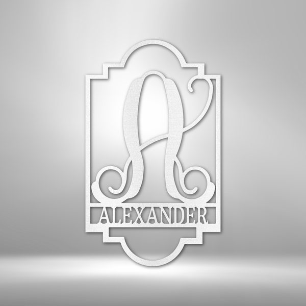 A fresh take on a classic sign, our Regal Monogram Sign is sure to impress with it's beautiful vertical shape and scalloped edges. Personalized with both an initial and custom text in the bottom bar.